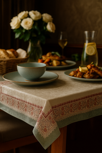 رومیزی و سفره ضدلک طرح ترمه سرمه ای