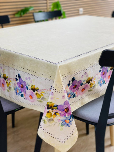 رومیزی مخمل شانل ضدلک گل آبرنگی