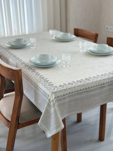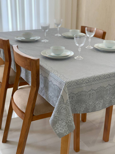 رومیزی و سفره ضدلک طرح پیچک طوسی