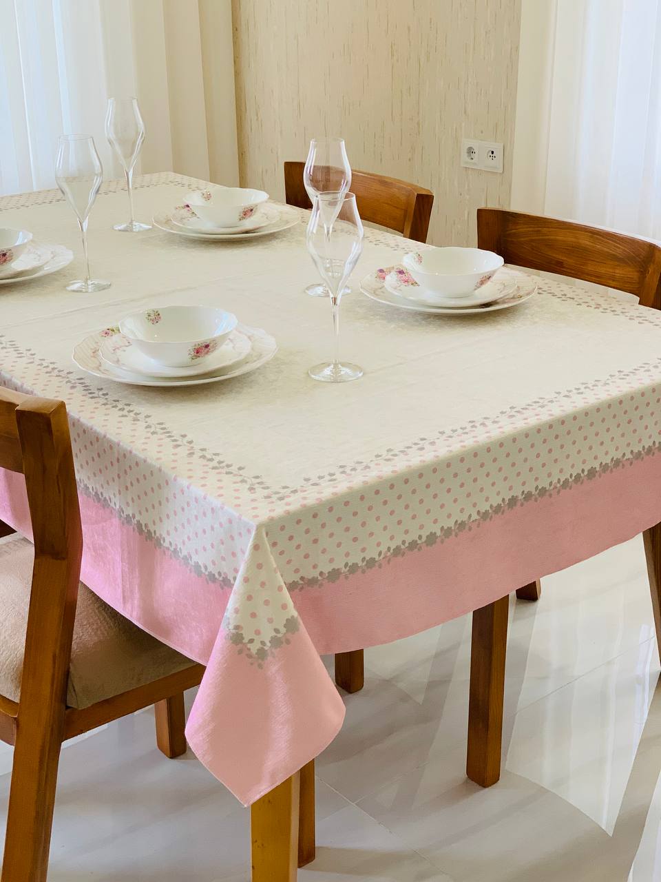 رومیزی و سفره ضدلک طرح نیلوفر صورتی